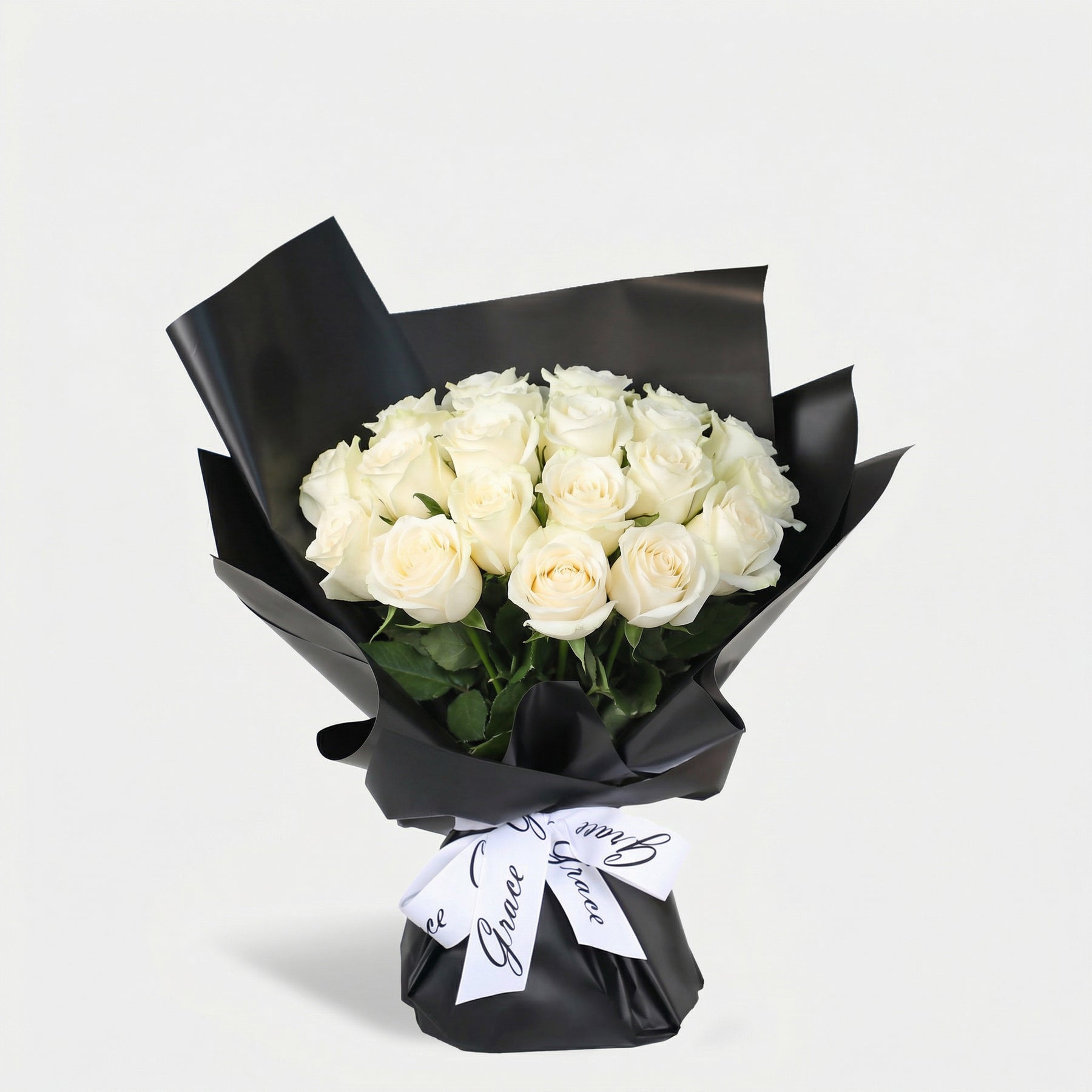 Featuring 25 premium red roses, carefully hand-arranged to create a balanced and refined composition. Finished in Grace’s signature black wrapping and tied with an elegant ribbon, this bouquet is ideal for anniversaries, romantic surprises, or moments that deserve a timeless floral touch.