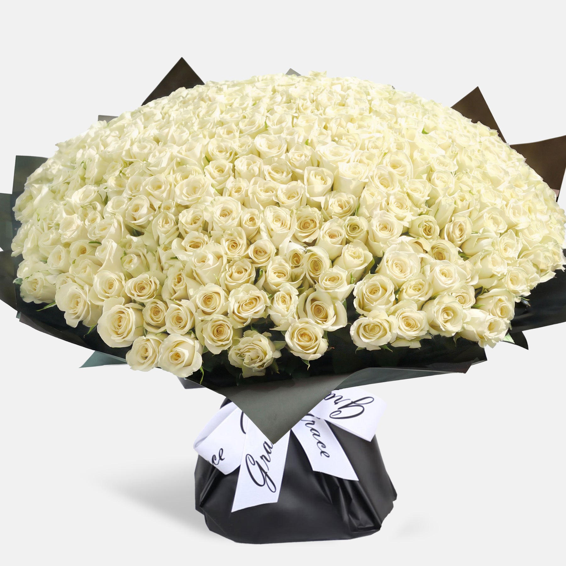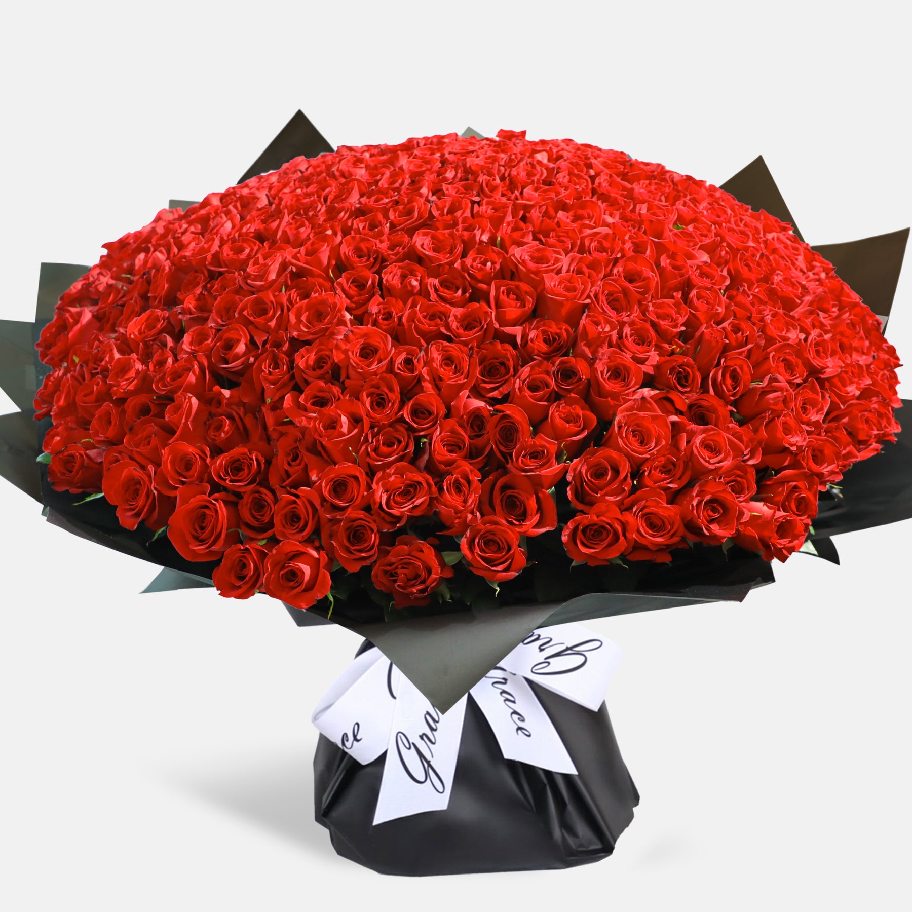 Crafted with 500 premium roses, this breathtaking arrangement creates a powerful visual impact that speaks of deep passion and limitless emotion. Hand-arranged into a perfectly full and luxurious bouquet, and wrapped in Grace’s signature black packaging with an elegant ribbon, it is made for iconic celebrations, proposals, and once-in-a-lifetime expressions of love.